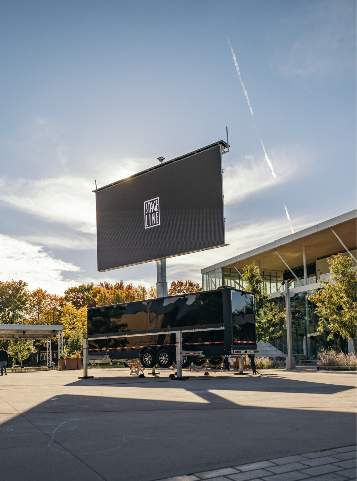 Specifically designed and manufactured for North American roads, the new LED Screen Trailer is the perfect addition to your events. Allowing a 360° screen rotation 30′ above ground, the robust ST100 trailer can sustain high winds and is built to last more than 25 years, just like any other Stageline equipment.